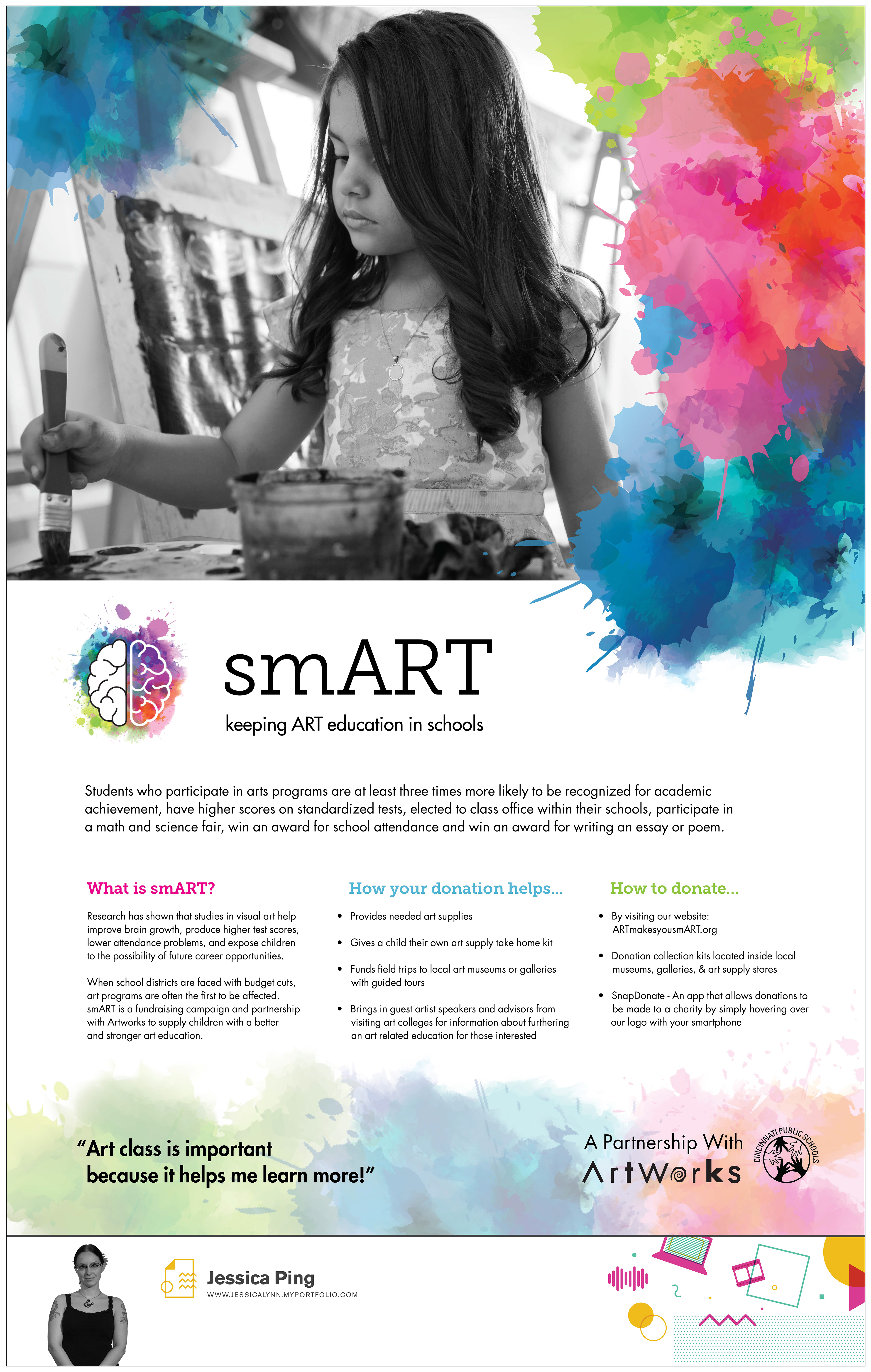 For my senior capstone I chose to focus on the importance of keeping art education in schools since it is often one of the first programs to go when schools face budget cuts and to also showcase the benefits what else an art educations provides.